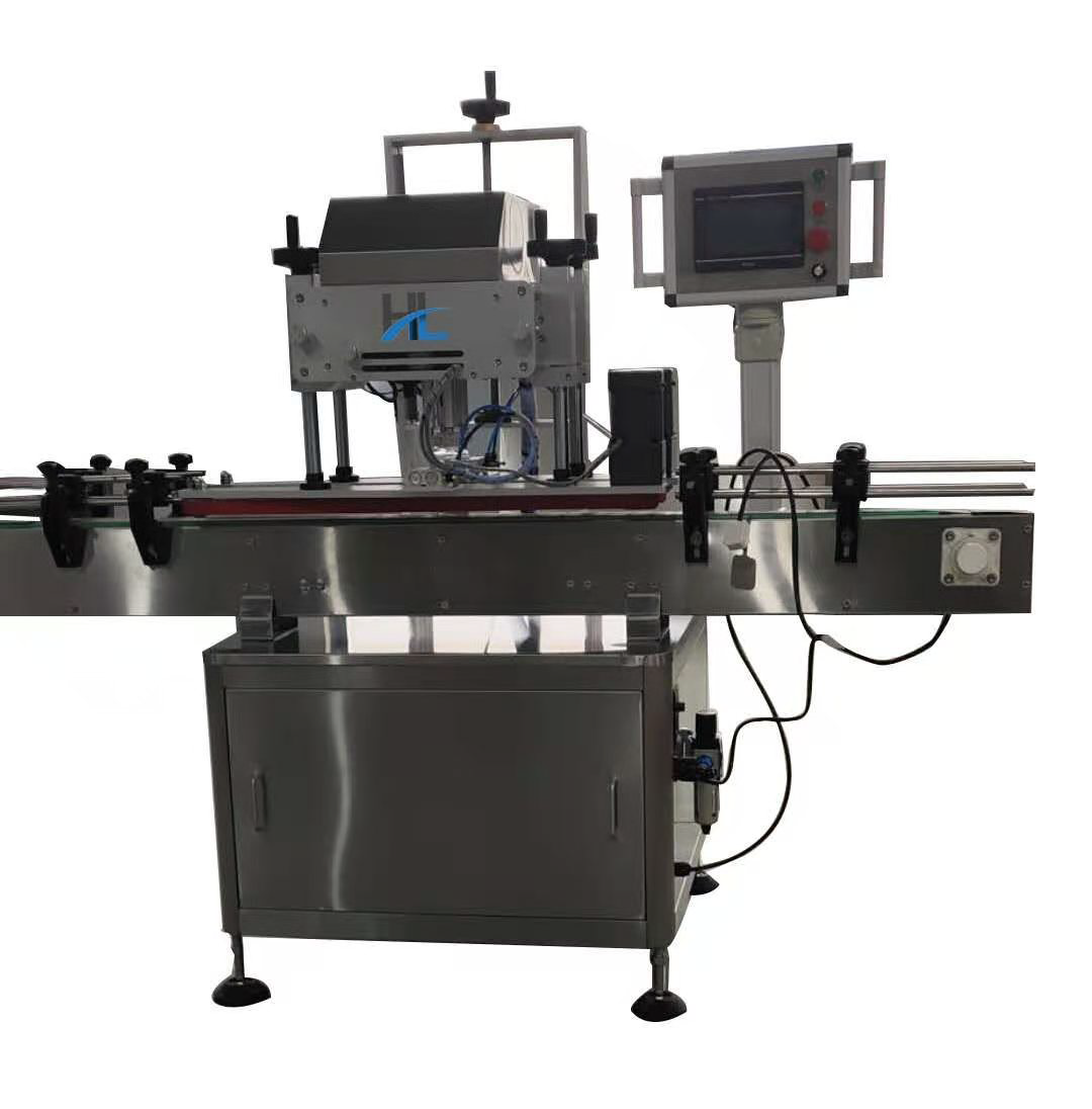 该机采用PLC可编程控制器,配以6”彩色触摸屏人机界面系统(中,英,韩);采用变频调速,旋盖平稳、可靠,合格率高;采用4轮夹旋的旋盖方式,旋盖速度快,合格率高,调整方便;选配理盖上盖机,可以实现自动上盖,刮盖,旋盖。